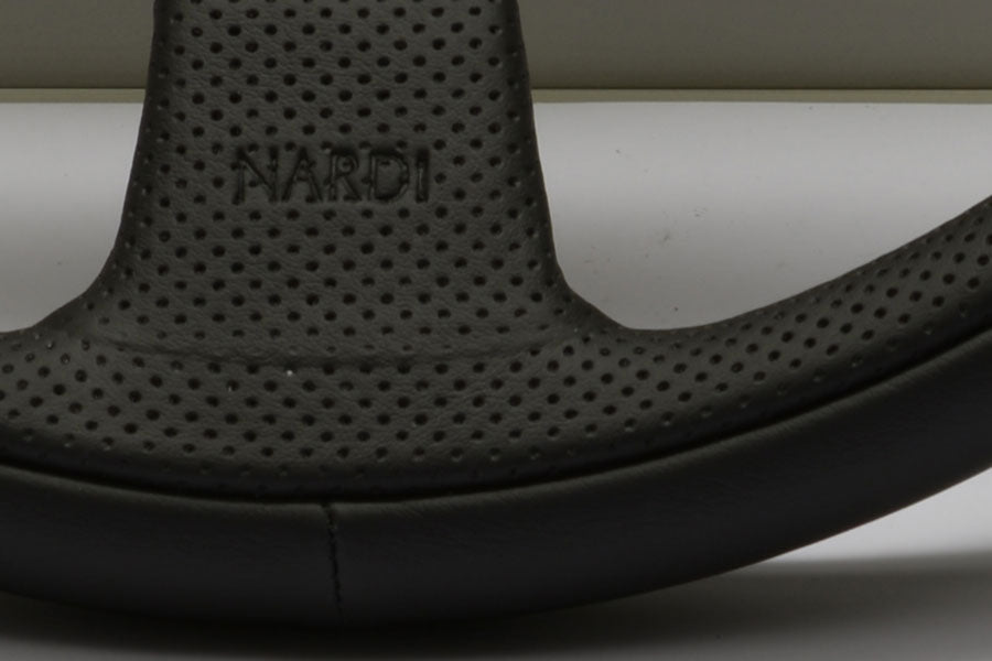 Black leather/Black punched leather/Black aluminium ring & spokes