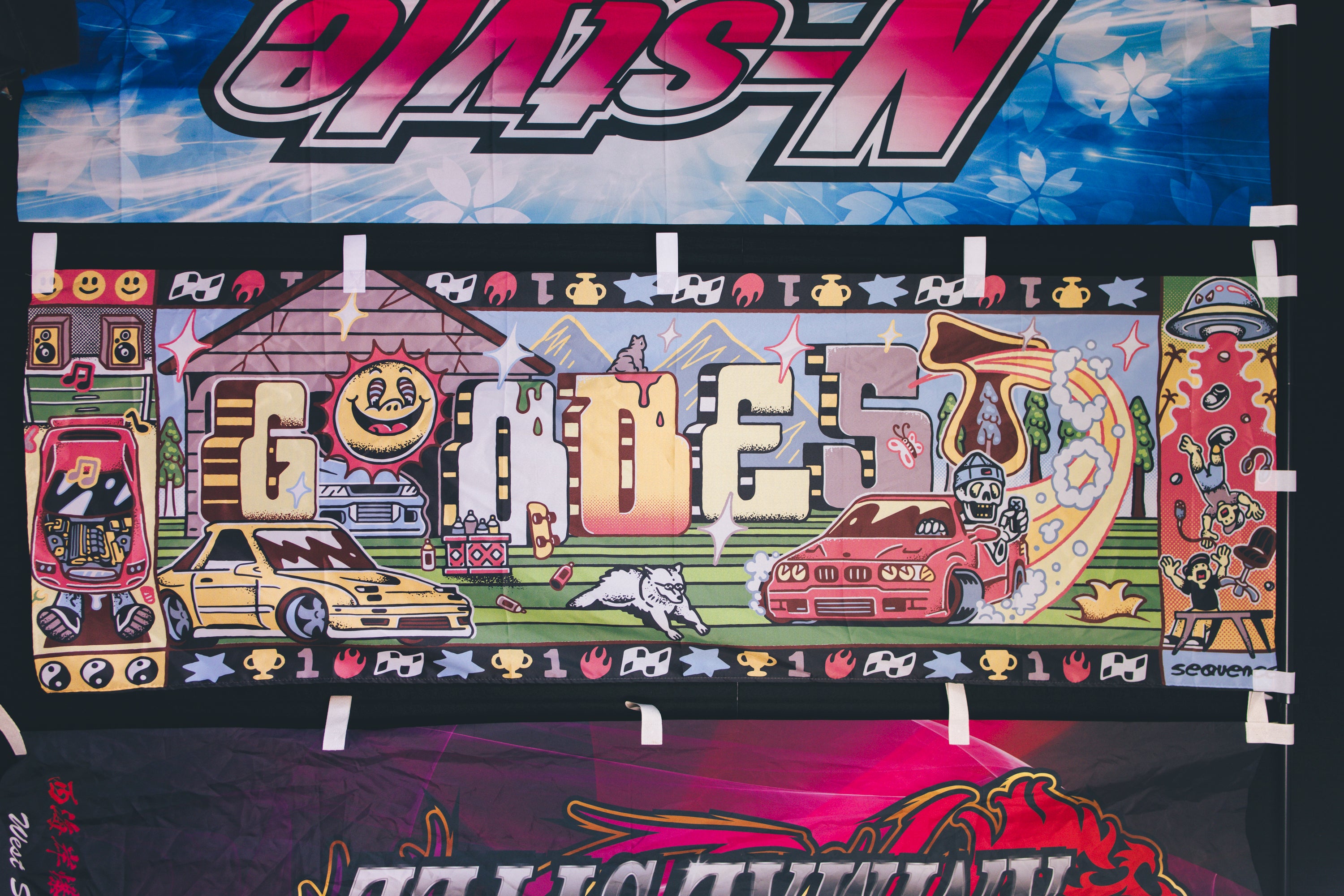 I've always wanted to make my own nobori flags. These are the flags you see hung up trackside for D1GP and many other drifting series around the world. I did these as a mural concept since most of the time these are hung up in garages, houses or offices. These are produced by Cutting Works Splash in Osaka Japan so the quality is true Japanese!art